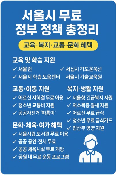 서울시 무료 정부 정책 총정리|교육·복지·교통·문화 혜택 모아보기