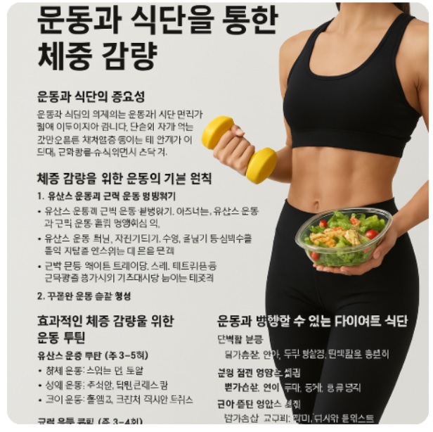 체중 감량을 위해서는 운동과 식단 관리가 함께 이루어져야 합니다. 단순히 적게 먹는 것만으로는 체지방을 줄이는 데 한계가 있으며, 근육량을 유지하면서 건강하게 다이어트를 하기 위해서는 운동이 필수적입니다. 이번 글에서는 운동과 함께 체중을 감량하는 방법에 대해 소개하겠습니다.